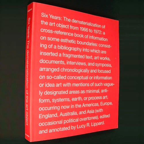 When I was at school there was a curious book by Lucy Lippard called ‘Six Years: The dematerialisation of the art object ‘ – which was a survey of what was emerging as conceptual or informational or idea art in the period 1966 to 72.